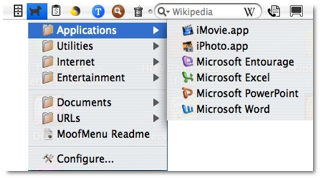 Installation Note: If you are upgrading from an earlier version you need to quit MoofMenu before you overwrite it. You can quit MoofMenu by opening the Configure window and then pressing Alt-Cmd-Q. |