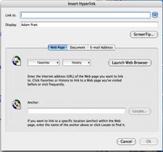 [Insert Menubar Item > hyperlink]