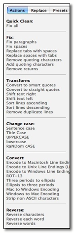 I found, the brand new Quick Clean action, let me solve with a single click the most common cleaning problems for text found in email messages, strangely text coded documents and web pages. After cleanup, then I could further reduce clutter with the replace feature.