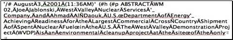 '/ August 3, 2001 (11:36AM)‘ ( h ( p ABSTRACT WM 02, Joe Jablonski, West Valley Nuclear Services ‘_ Company, and Ahmad Al Daouk, U.S. Department of Energy‘_ Achieving Readiness for the Largest Commercial Cross Country Shipment of Spent Nuclear Fuel in the U.S. The West Valley Demonstration Project (WVDP) is an environmental cleanup project at the site of the only |