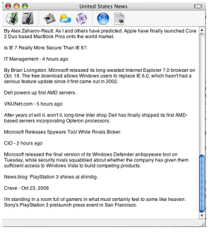 Take any document or RSS feed and convert it into an MP3/AAC track in iTunes using your Mac's built-in text-to-speech capabilities. Download news, weather forecasts and driving directions. From there, it's a quick sync to your iPod.